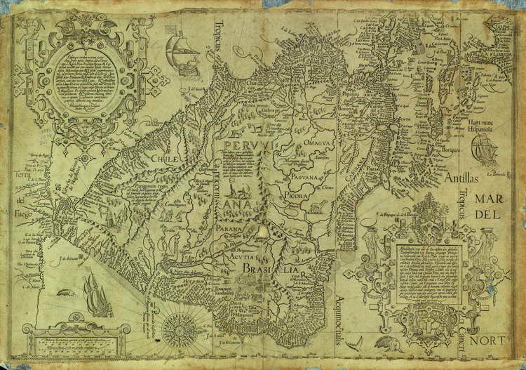 Título: Delineatio omnium orarum totius australis partes Americae dictae Peruvianae a R. de la Plata, Brasilian, Pariam castellam auream una cum omnibus insulis Antilla dictis, hispaniolam hem Cunam