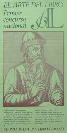 Título: El Arte del Libro. Primer Concurso Nacional. La Dirección de Editoriales del Ministerio de Cultura lo invita los días 31 de marzo al 10 de abril de 1983, en la Biblioteca Nacional José Martí, a la exposición El Arte del Libro...
