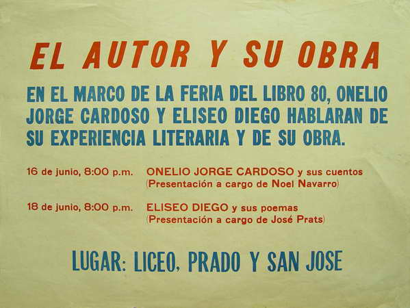 Título: El Autor y su obra. En el marco de la Feria del Libro 80, Onelio Jorge Cardoso y Eliseo Diego hablarán de su experiencia literaria y de su obra...