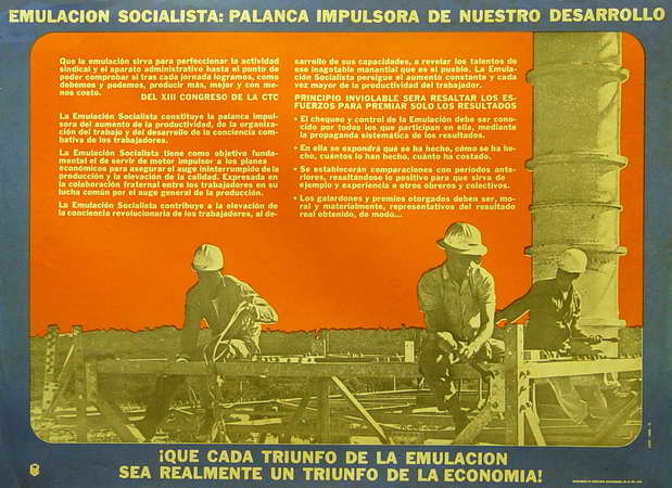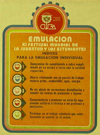 Descriptores: EMULACION SOCIALISTA ; MATERIAL GRAFICO ; CARTELES ; LAMINARIO ; POSTER ; AFICHES