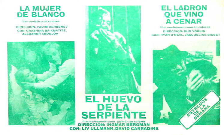 Título: Estrenos de la semana. la mujer de blanco. El huevo de la serpiente. El ladrón que vino a cenar