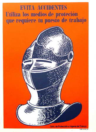 Título: Evita accidentes. Utiliza los medios de protección que requiere tu puesto de trabajo. Dpto. de Protección e Higiene del Trabajo
