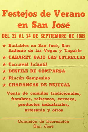 Título: Festejos de verano en San José. Del 22 al 24 de septiembre de 1989. Bailables en San José, San Antonio de las Vegas y Tapaste. Cabaret bajo las estrellas...
